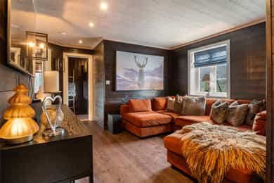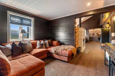 Lekker og moderne fritidsbolig med fantastisk utsikt! 154 kvm gulvareal. 4 sov, 2 bad og badstue. Ski inn/ut. Solrikt!