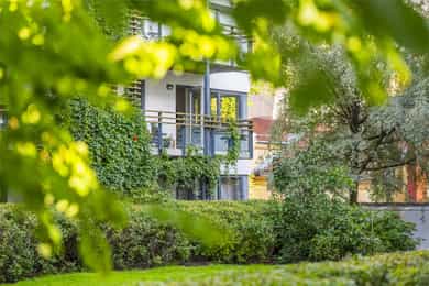 Lekker 3-roms hjørneleilighet m/solrik, vestvendt balkong - Usjenert mot frodig park -Heis -Garasje*- Felles takterrasse