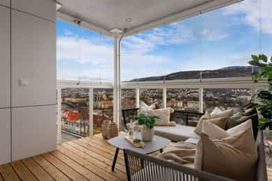 Utsiktsperle! Fantastisk 4-roms med 12m² innglasset balkong & felles takterrasse! Mye inkl. i felleskostnadene. Må sees!
