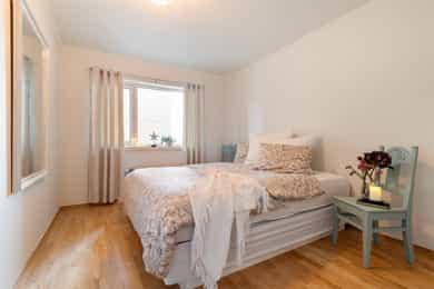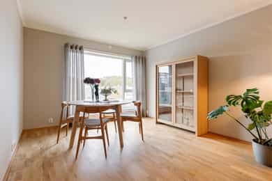 # Heis rett opp til leiligheten # Garasjeplass i kjeller # Overbygget balkong med utsikt og kveldssol # Bygget er fra 2014 og fremstår som meget bra # 2 soverom # Stor stue og kjøkkenløsning med flere soner og et stort panoramavindu Heisann, Simen Smith Ringdal fra NORDVIK BOLIG her. Nå har jeg gleden av å presentere en ganske så strøken leilighet med ett praktisk inngangsparti og med en flott romløsning med 2 soverom som ligger på hver sin side av gangen. Du får et flott og romslig bad, pluss eget vaskerom/teknisk rom, og ikke minst så får du en stor og lys stue med store vinduer og plass til både spisestue, sofagruppe og godstoler. Og som en liten bonus så har du en overbygget balkong mot nord som gir deg utsyn og kveldssol. Leiligheten fremstår meget bra så her flytter du rett inn