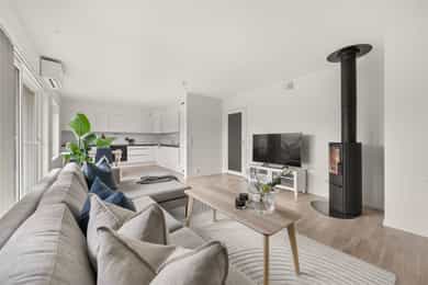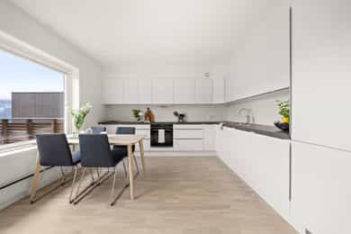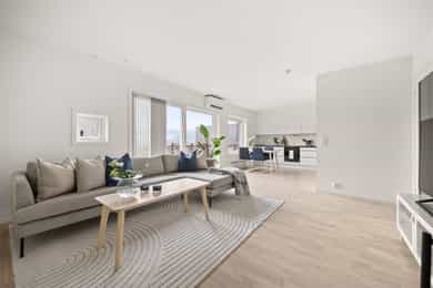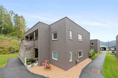 Moderne 3-roms leilighet - Oppført i 2023 - Funkis stil - Carport m/ladeboks - Terrasse m/utsikt - Flytt rett inn!