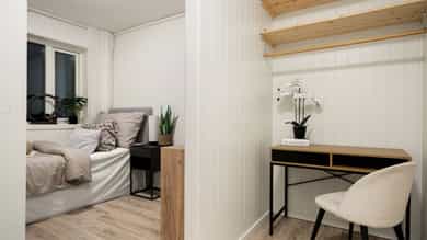 Kristoffer Eastwood i Nordvik presenterer Moldfaret 17J Flott selveierleilighet med naturskjønn og fin beliggenhet på Myra. Leiligheten holder en moderne standard fra 2017 og har bl.a. 2 soverom, innvendig bod og parkeringsplass. Fra stuen er det adkomst til fin balkong med kveldssol og flott utsikt over skog/ natur. Beliggenheten er sentral med kort vei til sentrum og Stoa med sitt brede tilbud. Gangavstand til Sam Eyde med tennisbaner, volleyball, hall, skøytebane, lysløye med skiløyper og mye med. Leiligheten kan kjøpes med oppgraderingspakke som involverer vegglister, fiskebeinsparkett, slette veggoverflater og nytt kjøkken for et tillegg til kjøpesum. Det er flere tilsvarende leiligheter tilgjengelig.