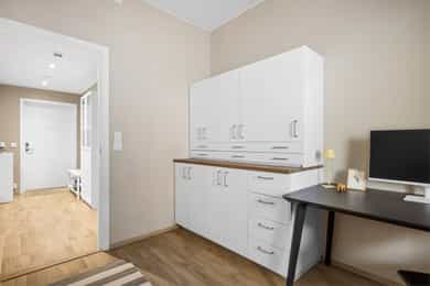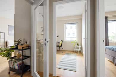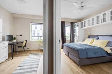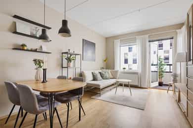 Velkommen til Freserveien 9, en lys og moderne 3-roms i 5. etasje i bygg fra 2018. Leiligheten har en praktisk og gjennomført planløsning med BRA-i 60 kvm, i tillegg til bod i kjeller på ca. 9 kvm (BRA totalt 69 kvm). Her får du en sosial stue-/kjøkkenløsning med gode møbleringssoner, moderne kjøkkeninnredning og integrerte hvitevarer, samt naturlig plass til spisebord. Videre inneholder boligen to soverom, hvor hovedsoverommet har utgang til balkong, og et flislagt bad med gulvvarme, servantinnredning og opplegg for vaskemaskin. Balkongen på ca. 14 kvm fungerer som et ekstra uterom store deler av året, med god plass til både spisegruppe og lounge. Balansert ventilasjon og fjernvarme/vannbåren varme via radiator gir et behagelig inneklima. Velkommen til visning!