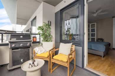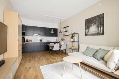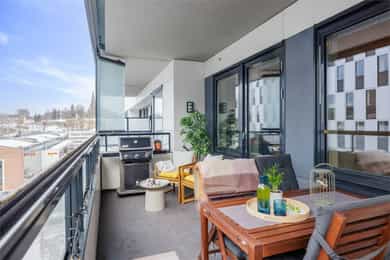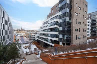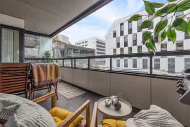 Moderne 3-roms fra 2018 | 14 kvm overbygd, delvis innglasset balkong | 2 sov | Fjernvarme/vannbåren – Kværnerbyen