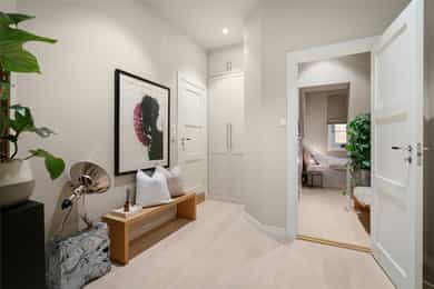 Innbydende 3-roms leilighet med flott beliggenhet på Frogner. Leiligheten holder en god standard med gjennomtenkte løsninger og ble pusset opp 2017 med blant annet nytt bad, kjøkken, gulv og garderobeløsninger. Boligen ligger i en ettertraktet bygård med heis, god vedlikeholdshistorikk, store vindusflater og flott bakgård. Legg merke til: - Peis - Heisadkomst - Gjennomgående - 1-stavs eikeparkett - Takhøyde på ca. 2.9 m - 2 boder på hhv. ca. 4 kvm - Lekkert totaloppusset bad fra 2017 - Lave omkostninger, ingen dokumentavgift - HTH kjøkkeninnredning og Miele hvitevarer fra 2017 - To gode soverom hvorav det ene har walk in closet og vender mot rolig bakgård - God vedlikeholdshistorikk i sameiet; fasade, trappeoppgang, heis, brannsikring og tak