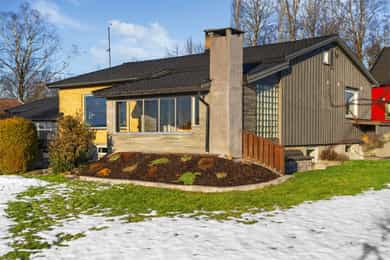 Enebolig m/flott opparbeidet hage, optimale solforhold og fin utsikt - 3(4) soverom, 2 stuer og 2 bad - Garasje +carport