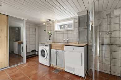 I vaskerommet er det en badstue. Arealet kan ikke oppgis som BRA i arealoppsett da takhøyde er under 1,9m. Badstua er oppgitt som ALH, areal med lav himlingshøyde.