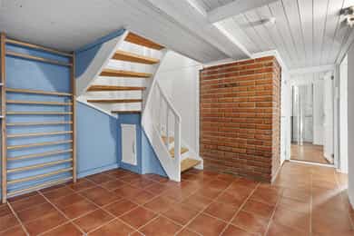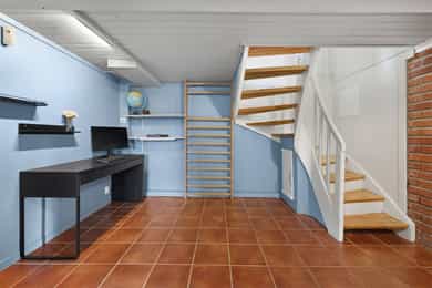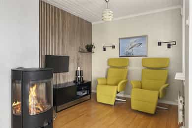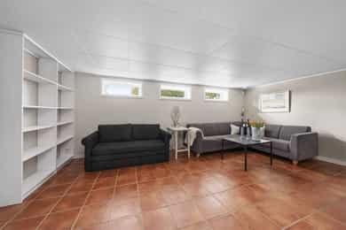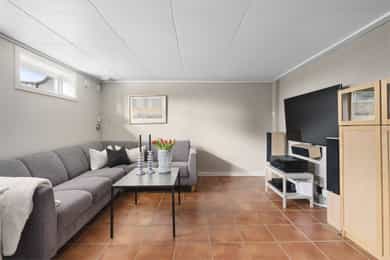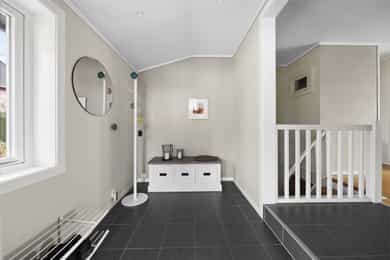 1. etasje: Entré: Fra overbygget inngangsparti, trer du inn i en lys og romslig entré med god plass til sko og yttertøy. Praktiske fliser med varmekabler i gulv. Fra entré har du videre tilgang til kjøkken på høyre side, stue rett frem og gang til de øvrige rommene på venstre side. Stue: Lys og meget romslig stue med gode vindusflater som sørger for godt lysinnslipp. Stuen tilbyr god møbleringsfrihet med plass til flere sittegrupper. Det er montert peisovn som sørger for god oppvarming. Fra stuen er det utgang til delvis innbygget terrasse. Kjøkken: Lyst kjøkken med slette fronter og laminert benkeplate. Kjøkkeninnredningen tilbyr godt med skap- og benkeplass. Innredningen har integrert stekeovn og platetopp. Det er avsatt plass i innredningen til oppvaskmaskin og kjøleskap. Det er plass til et lite spisebord ved vinduet på kjøkkenet. Bad: Pent, helfliset baderom som er pusset opp i 2019. Baderommet er utstyrt med varmekabler, heldekkende servant over skuffeinnredning, speilskap, vegghengt skap og stort dusjhjørne. Separat toalettrom. Soverom: Det er to soverom i denne etasjen. Hovedsoverommet er av god størrelse med plass til dobbeltseng, nattbord og annet mindre soveromsmøblement. Det er montert romslig skyvedørsgarderobe med speilfronter. Soverom 2 har plass til seng og er utstyrt med skyvedørsgarderobe. Det er trapp opp til hems fra soverom 2. Kjeller: Kjellerstue: Praktisk kjellerstue som er av god størrelse. I kjellerstuen er det god plass til sofagruppe og tilhørende møblement. Det er åpen peisovn. Flislagt gulv med varmekabler. Soverom: Lyst soverom med god plass til dobbeltseng, nattbord og garderobeskap. Vaskerom: Romslig vaskerom med servant over innredning. Det er plass til vaskemaskin og og tørketrommel. Det er montert skyvedørsgarderobe og dusjhjørne med innfellbare glassvegger. Fra vaskerommet er det inngang til badstue. Eget praktisk WC med toalett og vask