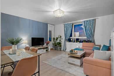 Lys og trivelig 2-roms med sørvendt balkong på 7 m²! Garasjeplass - Heis - Attraktiv og sentral beliggenhet!