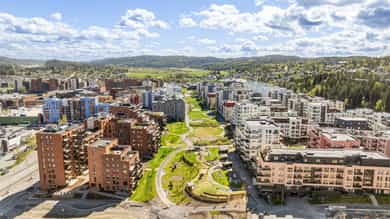 Nyere bebyggelse bestående av i hovedsak leiligheter, samt næring.