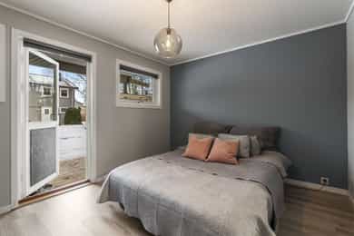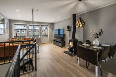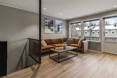 Nordvik har gleden av å presentere Furumoveien 16f og denne innholdsrike og pene leiligheten m/en smart planløsning. Her har du stue og kjøkken i den "riktige" etasjen, slik at man får optimale solforhold, og større romfølelse. Det er både solrik balkong og markterrasse m/stor hagedel. Et ekstra rom benyttes i dag som kontor/gjesterom (ikke søkt og godkjent som oppholdsrom). Leiligheten gir et lyst og godt inntrykk og ligger rolig til i blindvei m/kort vei til skog, sjø, dagligvare, skole og barnehage. Kort oppsummert; - Enderekkehus - Solrik balkong og markterrasse m/egen hage - Garasje - Romslig soverom m/stor garderobe, samt ekstra rom som nå brukes som kontor - Loft m/god lagringsplass - Skiftet kledning, vinduer og etterisolert loft i regi av brl. - Attraktiv og rolig beliggenhet