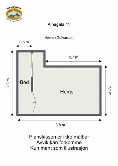 Boligen ligger i 3. etasje og inneholder: Entré, stue/kjøkken, soverom, hems og bad. Det disponeres en kjellerbod på 3 m².