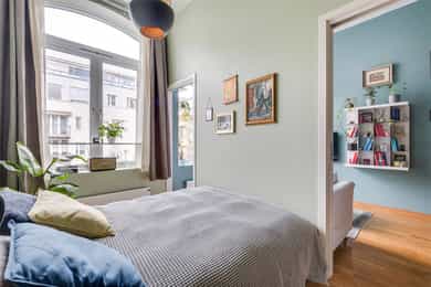 Entré: Velkommen inn! Hyggelig entré med plass til å henge fra seg ytterklær og sko. Stue/kjøkken: En lys og romslig stue med over 3 meters takhøyde og flotte vindusflater fra 2021 som slipper inn rikelig med dagslys. Her er det plass til både sofa, spisebord og øvrig møblement. Stuen og kjøkkenet har en åpen og sosial planløsning. Kjøkkenet er innredet med slette fronter og heltre benkeplate. Det er utstyrt med integrerte hvitevarer som kjøle- og fryseskap, stekeovn, platetopp og oppvaskmaskin. Det er tilkoblet kjøkkenventilator med kullfilter. Det er ikke komfyrvakt og automatisk vannstopper da det ikke var et krav da kjøkkenet ble montert. Soverom: Romslig soverom vendt mot rolige omgivelser. Det er god plass til dobbeltseng, nattbord og garderobeskap. Hems: Praktisk hems på 9 m² som passer perfekt som ekstra soveplass eller til oppbevaring. Her er det god plass til seng og oppbevaringsmøbler. Varmtvannsbereder er plassert i skap på hems (120 liter). Bad: Flislagt bad pusset opp i regi av borettslaget i 2007. Baderomsinnredningen består av servantskap, dusjsone, toalett og opplegg for vaskemaskin. Det er varmekabler i gulvet. Badet er tilkoblet mekanisk avtrekk på badet. Øvrig: - Parkettgulv - Automatsikringer - Kullfilter på kjøkken - 3-lags vinduer fra 2021 - Mekanisk avtrekk på bad - Takhøyde på 3,27 m i stue
