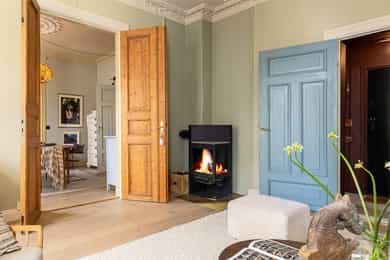 • Originale, doble fløydører og peisovn