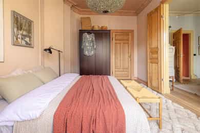 Stilren, klassisk og gjennomgående 3-roms med originale detaljer og tilbaketrukket beliggenhet. Her bor du i en ærverdig gård fra slutten av 1800-tallet i en rolig gate. Bergstien ligger skjermet og tilbaketrukket til omkranset av velholdte bygårder fra århundreskiftet. Sentral beliggenhet midt på St. Hanshaugen med få meter til en rekke hyggelige kaféer, butikker, offentlig kommunikasjon, samt den populære parken på St. Hanshaugen.