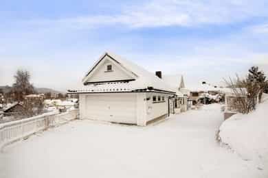 Frittstående dobbelgarasje på ca. 34 kvm med motorisert port, elbillader og underetasje på ca. 30 kvm med boder, samt gode parkeringsmuligheter på egen tomt.