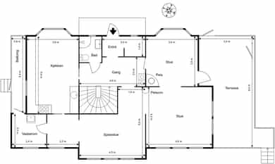 BRA-i: 106 kvm. Entré, gang, 2 stuer, spisestue, kjøkken, bad og vaskerom.