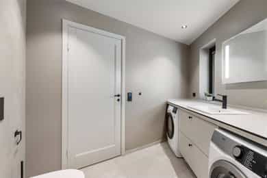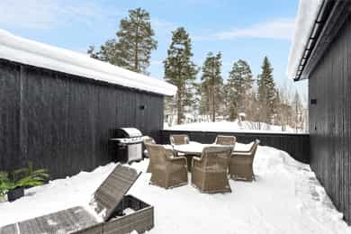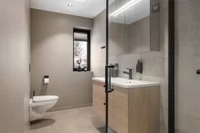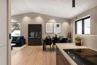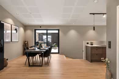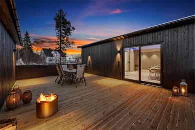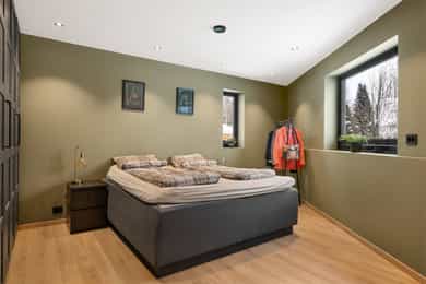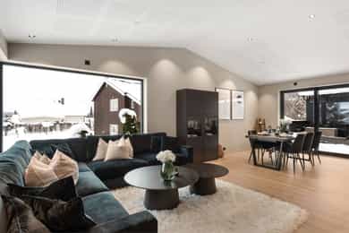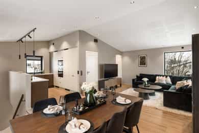 Nyere funkis (2024) med høy standard, vannbåren varme, 43m² takterrasse - 2 bad, 3 soverom, carport og bod!