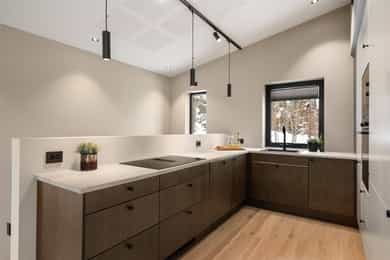 Nordvik Eiendomsmegling presenterer Dr. Lunds veg 9A. En rålekker enebolig med høy standard og gjennomtenkte valg i farger-/materialer. Boligen byr på vannbåren varme fra luft-til-vann varmepumpe, balansert ventilasjon med varmegjennvinning, klartgjort smarthus og dim-to-warm downlights. Videre har man glatte veggflater, store vindusflater og god takhøyde. Elektrisk solskjerming i stue og harmonerende plissegardiner i sov. Boligen består av en romslig flislagt hall med skyvedørsgarderobe, stue/kjøkken i åpen sone med imponerende takhøyde og to stilrene bad. Kjøkkenet har lekker innredning fra Norema med integrerte hvitevarer. Tre soverom av god størrelse, teknisk rom og bodplass under trapp. Parkering i carport med sportsbod i bakkant. Skjermet takterrasse på hele 43 m² utenfor stue!