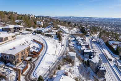 Solrik boligtomt på 821 kvm med panoramautsikt! Blindvei rett ved marka og Holmenkollen T-banestasjon. BYA 12%.