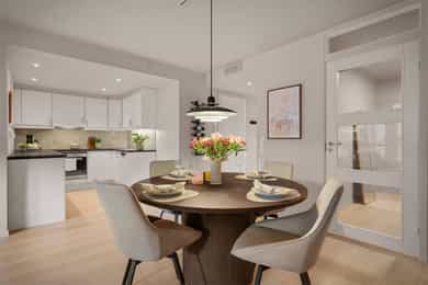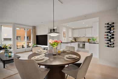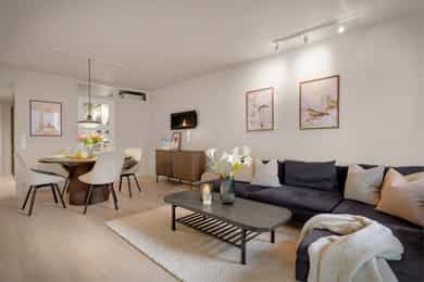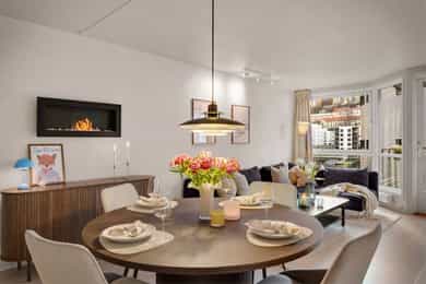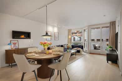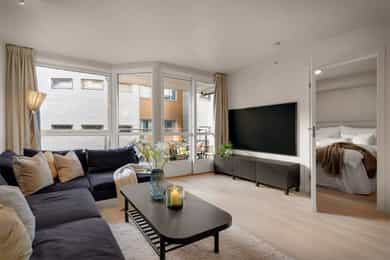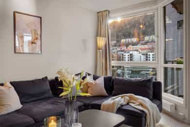 En nydelig leilighet beliggende i maritime omgivelser, i et av Bergens mest ettertraktede borettslag. Lekker standard med delikate detaljer og moderne kvaliteter. Nyt fasiliteter som balkong, heis og parkering med elbil-lader i lukket garasjeanlegg. Bo rolig og godt rett i utkanten av sentrumskjernen