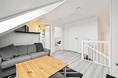Entré Lys entré med åpent ut til mellomgang og trapperom, flislagt gulv med varme. Adkomst til bodrom/teknisk rom med mulighet for ekstra garderobeplass. Stue Boligen har stue i hver etasje med god plass til sofagruppe og opplegg for tv med tilhørende tv-møblement. Stuen i 1.etasje er lys og med gode lysforhold fra de store vindusflatene, utgang til terrasse med adkomst til hagen. Peisovn er montert i stue mot mellomgang, koselig med fyr i ovnen på de kaldeste dagene. Fra stuen kan du se Mjøsa! Koselig "loftstue" i 2.etasje med plass til sofakrok, innlys fra stilig takvindu, fin stue for de minste eller ungdommene i huset. Kjøkken Lyst og moderne kjøkken hvor innredningen har laminerte skrog med profilerte fronter. Laminert benkeplate i en brytende og fin gråtone med steinimitasjon. Stor nedfelt kjøkkenkum i børstet stål. Kjøkkenet har godt med skapplass i over og underskap samt skuffeseksjoner. Enkelte overskap med glassfelt og med pen belysning innvendig. Det er integrerte hvitevarer som stekeovn, koketopp, oppvaskmaskin og kjøl/fryseskap. Delvis kjøkkenøy med underskuffer og bakvegg, koselig kaffehjørne. God belysning i himling med spottskinne og lampepunkt over spisegruppen. Åpen løsning til stuen. Bad, wc og vaskerom Pent kombinert bad og vaskerom i 1.etasje med adkomst fra gang. Mørke grå tidløse fliser på gulv med varmekabler. Lyse hvite baderomsplater på vegger med flisimitasjon. Himlingsplater i himlingen med spottskinne for god belysning. Romslig og plassrik innredning i gråfarge med slette fronter, heltrukket servant med stort speil over med tilhørende belysning. Høyskap med god oppbevaringsplass. Opplegg for vaskemaskin etc er praktisk bak skyvedørsgarderobe. Ellers har badet dusjhjørne med glassvegger og gulvmontert toalett. Soverom I denne boligen finner vi totalt tre soverom fordelt på to etasjer. Hovedsoverom i 1.etasje med god størrelse, plass til dobbeltseng med tilhørende nattbord. Rommet har garderobeskap, i tillegg er det plass til andre praktiske soveromsmøbler med plass til klær. I 2.etasje fins to store og fine soverom med god plass til ønsket sengeløsning, nisje hvor det er plassert garderobeskap, mulighet for skrivepult eller andre møbler etter ønske. Lagring Boligen har godt med lagringsplass. Bod/teknisk rom i entré i 1.etasje, bodrom i 2.etasje. Utvendig bod i bakkant av carport. Tekniske installasjoner Synlige vannrør av plast (rør-i-rør), besiktiget fra rørskap. Synlige avløpsrør i plast. Varmtvannsbereder på ca. 200 liters kapasitet. Elektrisk anlegg med automatsikringer, i skjult ledningsnett. Sikringsskap er plassert på bod/teknisk rom i 1.etg. Røykvarslere og brannslukker apparat er montert. Boligen har balansert ventilasjonssystem. Generelle materialvalg Innvendige gulv med laminat og fliser. Vegger med malte panelplater. Himlinger med himlingsplater og takpanel. Malt tretrapp mellom etasjene. Innvendige malte fyllingsdører. ___________________________ Det er i forbindelse med salget utarbeidet en tilstandsrapport fra bygningssakkyndig. Tilstandsrapporten er en teknisk gjennomgang av boligen med oppdagede avvik. Forhold som har fått TG2 og TG3 må gjennomgås spesielt nøye, da disse indikerer avvik fra normal slitasje og/eller høy alder, med mulig behov for utbedring. Bygningsdeler som har fått TGIU er ikke undersøkt av takstmann. Bygningsdeler som har fått TG2: - Tekniske installasjoner > Elektrisk anlegg Avvik: Tilstandsgraden er vurdert ut fra den forenklede og begrensede kontrollen som forskriften inneholder. El-anlegget kan ha feil og mangler som en slik forenklet undersøkelse ikke vil avdekke. Bygningsdeler som har fått TG3: - Ingen. Bygningsdeler som ikke er undersøkt (TGIU): - Utvendig > Takkonstruksjon/Loft Avvik: Hele takkonstruksjonen er gjenbygget. Det er ingen mulighet til vurdering utover alder og observasjoner fra underliggende etg.