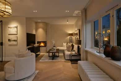 KOMMER FOR SALG Svært påkostet og imponerende halvpart av tomannsbolig med gjennomgående høy standard på håndverk, samt materialvalg i ypperste klasse! Huset er over 3 plan, med muligheter for å etablere takterrasse. Stue og kjøkken på hele 70m². Ekstra TV-stue i 1. etg. Enormt med lagring. Nyetablert, solrik vestvendt hage, samt lekker markterrasse med dagsol. Balkong fra både master avdeling og stue med dag- og kveldssol. Stor garasje. INFO: - Hellimt Chevron eikeparkett - Vannbåren varme - Nye kvalitetsfliser fra Living Ceramics - Eksklusive tapeter fra bla. Colefax and Fowler - Ny belysning med nytt styringssystem - Flere nye sluk, soilrør, sveisemembran m.m - Hvitevarer fra Gaggenau og Liebherr kjøl/frys - Snekkerbygd kjøkken, garderober og servantskap Velkommen!