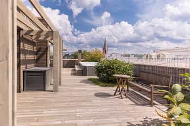 Nybygget 3-roms (2+1) fra 2021 med egen hybel for utleie. Rehabilitert bygård. Felles takterrasse med badstue/ jacuzzi