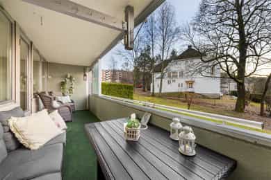 Velkommen til Dr. Dedichens vei 34! Her har vi en pen og innholdsrik 3 roms andelsleilighet på 75 m² med en fin, intern beliggenhet i Fagerholt Borettslag. Leiligheten ligger rolig til i første etasje og vender attraktiv mot Trosterudvillaen. Her har du nydelig utsyn mot villaen og skulpturpark/Botanisk hage. Dette er en ideell bolig for familier og etablerere som verdsetter både bynære fasiliteter og grønne omgivelser. Leiligheten er pent modernisert og har blitt jevnlig oppgradert over årene. Pent IKEA kjøkken fra 2002-/2012 og oppusset bad fra 2015. I tillegg er alle overflatene oppgraderte og nymalte. Fra stuen er det utgang til en romslig, innglasset balkong på 13 m² I tillegg medfølger egen garasjeplass med elbillader og to store kjellerboder, som gir rikelig med lagringsplass