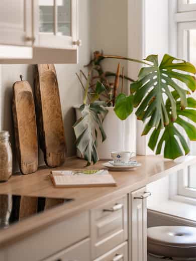 - Ny benkeplate på høyre side på kjøkkenet