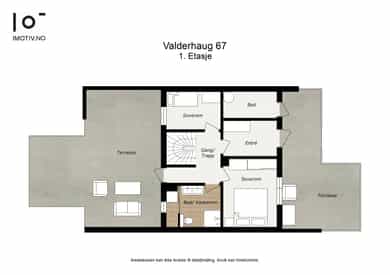 BRA-i: 49 kvm. Entré, gang/trapperom, bad/vaskerom og 2 soverom.