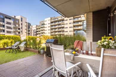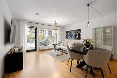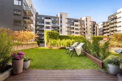 Unik sjanse midt på Torshov! Moderne 3-roms med skjermet markterrasse og hage på ca. 30 m² | Fyring og V.V inkl | Heis