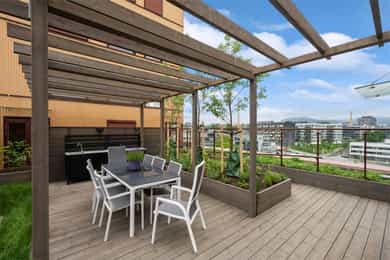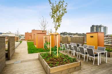• Sameiet har flere felles takhager med sol, panoramautsikt, pergola og utekjøkken m.m.
