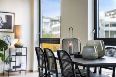 • Innvendig gir leiligheten et tiltalende inntrykk med sine store vindusflater og lyse fargevalg