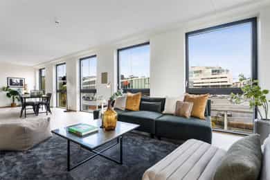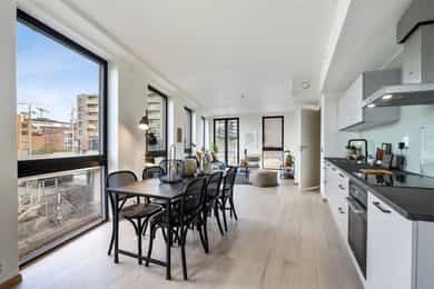 Lys og romslig 6-roms (2022) selveier på hele 125m². 5 sov/ 2 bad. Heis. Felles takhager. Sentralt. Sjelden mulighet!