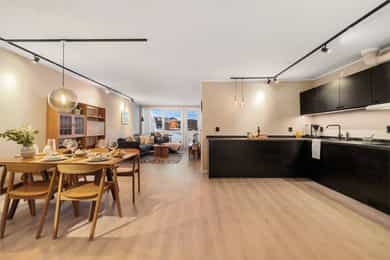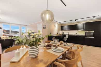 Velkommen til Hellmyrveien 30 D! En meget lekker og innflyttingsklar 2-roms leilighet, beliggende i byggets 3. etasje. Leiligheten har gode solforhold og flott utsikt, som kan nytes fra en romslig terrasse på hele 22 m². Leiligheten er betydelig oppgradert de senere år og fremstår med en gjennomgående god standard. Det er etablert nytt kjøkken og nytt bad, samt fornyede overflater. Planløsningen er åpnet opp og gir nå en moderne og innbydende atmosfære med god plass til møblering. Det er gode lagringsmuligheter i totalt tre boder. Fast parkering i carport med el-billader. Borettslaget ligger i et populært boligområde med kort vei til butikk og buss. Flotte turområder og skogsstier i nærområdet, samtidig som City Nord med kafé og shopping ligger like i nærheten. Velkommen på visning!