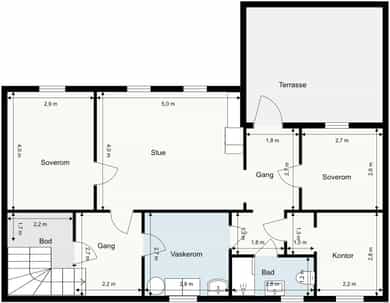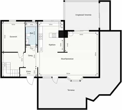 • Familievennlig løsning med 3 soverom og 2 stuer