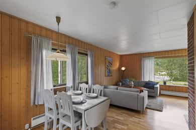 Velkommen til Nybrottsveien 4, her presentert av Nordvik! Eiendommen og går over to plan og ligger skjermet og barnevennlig til. Hovedetasjen inneholder stue, kjøkken, bad og tre soverom. Fra stuen er det utgang til en overbygd altan som fungerer som en flott forlengelse av stuen i sommerhalvåret. Underetasjen er innredet med kjellerstue/soverom (godkjent som hobbyrom), WC, bad/vaskerom og boder. Deler av kjeller har periodevis vært benyttet som utleiehybel for elever ved Finnfjordbotn vgs. som ligger 1 km unna med potensielle leieinntekter på ca kr 7000,- per mnd. Uteområdet byr på gode parkeringsmuligheter, frittstående garasje og utebod. Her får du et fantastisk uteområde med stor plen, grillplass med adkomst fra altanen for hyggelige sammenkomster sommer som vinter! *Videovisning!