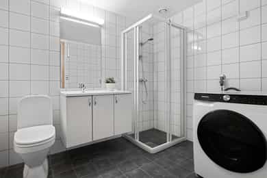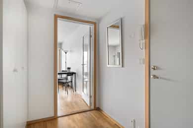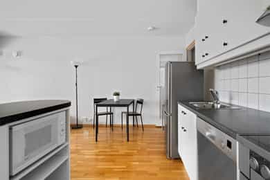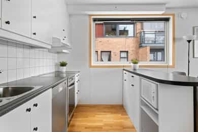 Velkommen til Kjørbokollen 21 - En lys og romslig 2-roms selveierleilighet i 2. underetasje (3. etasje fra balkongen) med heisadkomst beliggende i et attraktivt og populært boligområde i Sandvika. Leiligheten har en god planløsning og store vindusflater som slipper inn mye naturlig lys, samt vannbåren gulvvarme i alle rom. Fra stuen er det utgang til en herlig takoverbygget balkong på 8 m² med flott utsikt. Bilen parkeres trygt på medfølgende garasjeplass i felles garasjeanlegg. Leiligheten har lave felleskostnader med fjernvarme inkludert. Fra leiligheten er det kort vei til Sandvika sentrum med alt av servicetilbud. Det er gangavstand til Kalvøya og Kadettangen, hvor man kan nyte strand- og bryggeliv. Fra Sandvika stasjon er det ca 16 min med tog til Oslo S.
