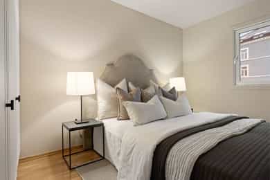 Lys og pen 2 roms leilighet med attraktiv beliggenhet i Bogstadveien. Leiligheten ligger svært sentralt, men oppleves likevel rolig og skjermet i sin helhet mot indre gård ute trafikkstøy. Den inneholder et romslig soverom, kjøkken, bad samt en innvendig bod som gir gode lagringsmuligheter. Boden kan enkelt tilpasses som walk in garderobe. Her bor du urbant og komfortabelt med kort vei til alt du trenger i hverdagen. Rett utenfor døren finner du et bredt utvalg av kaféer, restauranter, dagligvarebutikker, Vinmonopol, offentlig kommunikasjon og hyggelige grøntområder. Høydepunkter: - Nye vinduer og ny balkongdør i 2024 - Fritt og usjenert i 5. etasje - ingen innsyn eller gjenboere - Alle vinduer mot bakgård - Kjellerbod/i garasjeanlegg på 4 kvm - Felles takterrasse med fin utsikt