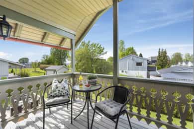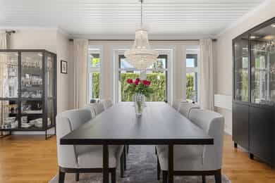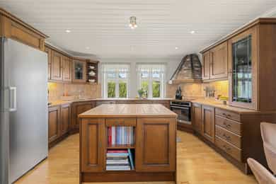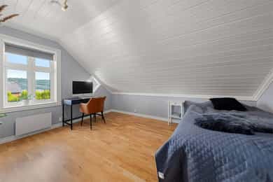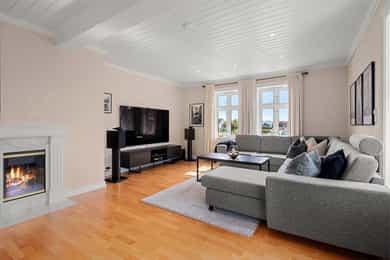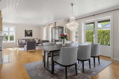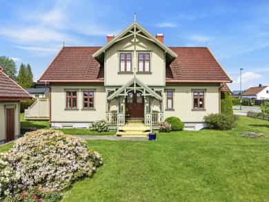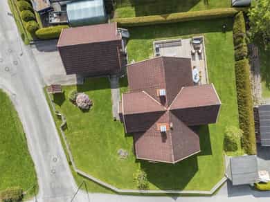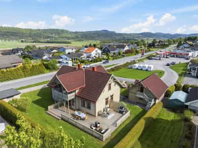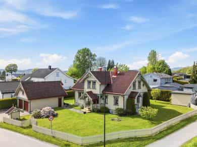 Vakker og gjennomført sveitservilla i et attraktivt boligområde. Godt vedlikeholdt. Dobbel garasje. Solrik hjørnetomt