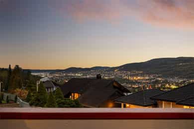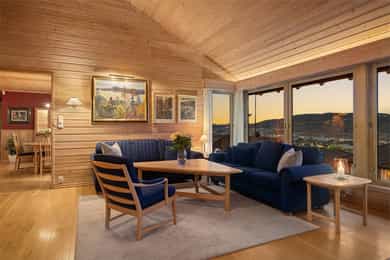 Arkitekttegnet bolig med idylliske og solrike uteområder - Fantastisk utsikt - Dobbel garasje - Skogen rett bak huset!