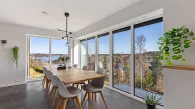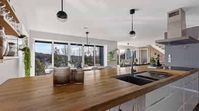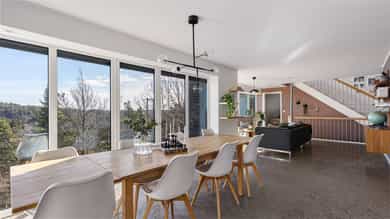 Velkommen til Elgveien 50 – en stilren og innholdsrik funkisbolig med gjennomgående høy standard og en attraktiv beliggenhet på Tromøy. Eiendommen ligger flott til med nydelig utsikt utover Tromøysund og gode solforhold som kan nytes fra flere uteplasser, inkludert to store takterrasser. Boligen fremstår moderne og påkostet, med rene linjer, store vindusflater og en gjennomtenkt planløsning som gir en luftig og eksklusiv romfølelse. Her er det lagt vekt på både komfort og estetikk, med kvalitetsmaterialer og gode løsninger i alle ledd. Boligen er energieffektiv og oppvarmes med vannbåren varme. Eiendommen har en egen utleiedel med høy standard, noe som gir gode muligheter for stabile leieinntekter eller fleksibel bruk. Leieinntekt ligger på ca 15.000,- pr mnd.