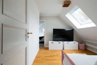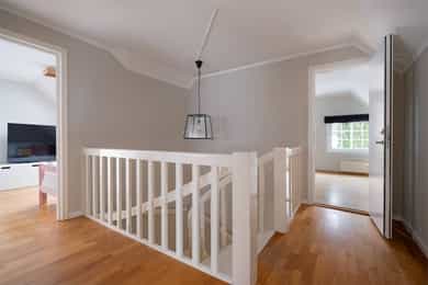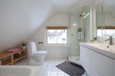 Boligen fremstår som godt vedlikeholdt, lys og innbydende med store vindusflater som slipper inn rikelig med dagslys. Hagen nyter gode solforhold fra tidlig morgen til ca. kl. 19:00 og gir fine muligheter for utendørs trivsel. Planløsningen er fleksibel og gir flere spennende muligheter, blant annet med egen inngang til kjelleren. Beliggenheten er idyllisk, innerst i en blindvei. Boligen holder en velfungerende standard, men kan tilpasses og oppgraderes etter behov og ønsker. Her finnes gode muligheter for optimalisering og stort potensial, samtidig som boligen er fullt beboelig slik den fremstår i dag. Kjeller: Kjelleren inneholder en stor og lys kjellerstue med god plass til sofagruppe, TV og øvrig møblement, og er et ideelt oppholdsrom for ungdom, spill og sosiale aktiviteter. Kjellerstuen har sjarmerende ildsted og elektrisk gulvvarme som gir effektiv oppvarming. Videre inneholder kjelleren bad med badstue, innredet kjellerstue, bod og teknisk rom. Fra kjeller er det vinkeltrapp med rekkverk i tre som leder opp til boligens 1. etasje. 1. etasje: Entré: Boligen ønskes velkommen gjennom en romslig entré med flislagt gulv og god plass til oppbevaring av yttertøy og sko i både garderobeskap og garderoberom/vindfang. Himlingshøyde målt til ca. 2,36 m. Fra entréen leder hallen videre til boligens øvrige rom, med trappeadkomst til både kjeller og 2. etasje. Her finnes også et praktisk gjestetoalett og et adskilt rom som i dag benyttes som kontor. Boligen har to innganger i 1. etasje – gjennom entréen og hallen, noe som gir fleksibilitet og en praktisk løsning. Kjøkken: Tidløst, pent kjøkkenet totalrenovert i 2020 med profilerte fronter og enkelte glassfronter i overskapene. Benkeplate med kum i rustfritt stål, kullfilterventilator og integrerte hvitevarer. Automatisk vannstopper er montert. Stue/spisestue: Stue og spisestue ligger samlet i et åpent og romslig areal med store vindusflater som slipper inn rikelig med naturlig lys, og skaper en lys og luftig romfølelse. Her er det god plass til å etablere flere naturlige soner for både sofagruppe og spiseplass. Fra stuen/spisestuen er det direkte utgang til boligens fantastiske hage, noe som gir en flott forlengelse av oppholdsarealet. Gulvene er belagt med parkett. 2. etasje: Øverste etasje ønskes velkommen via en lys og innbydende gang som binder sammen etasjens rom og gir enkel adkomst til loftsstue, tre soverom, innredet rom og bad. Badet er flislagt med innredning bestående av dusj, servant, klosett og badekar. Loftsstuen er lys og trivelig med direkte utgang til en herlig terrasse med gode solforhold. Hovedsoverommet er romslig med plass til dobbeltseng og stor garderobeløsning. Store vindusflater slipper inn rikelig med dagslys og gir rommet en luftig og behagelig atmosfære. De to øvrige soverommene er lyse og innbydende, med fleksible møbleringsmuligheter. Prefekt som barnerom, gjesterom eller ungdomsavdeling. Uteområdet: Flott skjermet hage som grenser mot fredelige grøntarealer med Midstubekken som nærmeste nabo. Fra hageporten kan man gå rett ut på en sti som leder oppover gjennom Korketrekkeren mot Frognerseteren, eller nedover mot Holmendammen. Hagen har gode solforhold. Plass til å innrede med ønsket utemøblement, grill og diverse beplantning. Garasje: Garasje på 19 kvm med montert strømuttak. Utenfor garasjen er det god plass til opptil to biloppstillingsplasser på egen tomt. Overflater på innvendige gulv: - Kjeller: Innvendige gulv er belagt parkett og fliser. - 1. etasje: Innvendige gulv er belagt parkett og fliser. - 2. etasje: Innvendige gulv er belagt parkett og teppe. Overflater på innvendige vegger: - Kjeller: Sparklet og malte plater. Malt glassfiberstrie. - 1. etasje: Sparklet og malte plater. Malt glassfiberstrie. - 2. etasje: Sparklet og malte plater. Malt glassfiberstrie. Malt tapet. Tekniske installasjoner: - Avløpsrør i plast og støpejern. - Varmtvannsbereder på 287 liter, produsert i 2012, montert i bod. - Boligen har balansert ventilasjonsanlegg med varmegjenvinning er montert med avtrekk i begge bad og kjøkken, samt lufttilførsel i oppholdsrom. Friskluft via spalteventiler for øvrig. - Det elektriske anlegget ligger skjult/åpent i konstruksjonen. Sikringstavle med jordfeilautomater, montert i bod i kjeller.