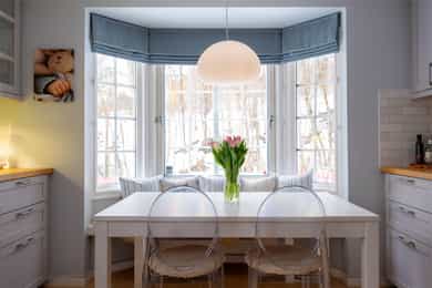 - Kjøkkenlampe og gardiner foran stuevegg ved verandadør (samt flatskjerm i kjeller).