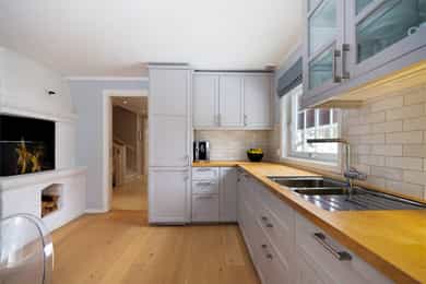 Kjøkkenet ble totalrenovert i 2020 og det ble lagt nytt gulv (parkett) i gangen i 2018.