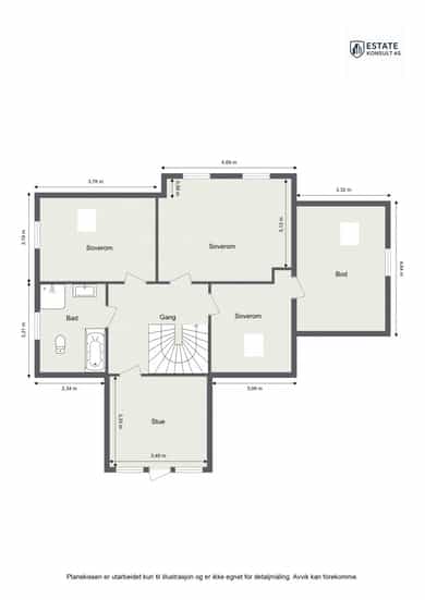 Arealmålingen er basert på Norsk standard 3940:2023 Areal- og volum-beregninger av bygninger. Arealet gjelder for tidspunktet da boligen ble målt. Rommene kan være måleverdige selv om bruken er i strid med byggteknisk forskrift.