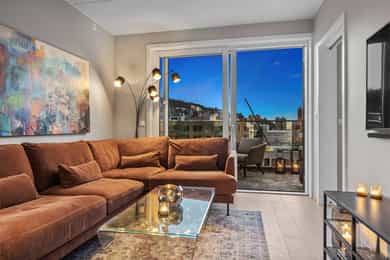 Eksklusiv 4-roms toppleilighet med fantastisk utsikt, to solrike balkonger, heis og garasje*