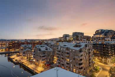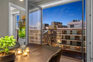 Nordvik Frogner har gleden av å presentere en særdeles tiltalende 4-roms toppleilighet som ligger ekstremt bra til med to solrik balkonger og flott utsikt mot fjorden, Barcode, Middelalderparken, Ekebergåsen m.m. Høydepunkter: