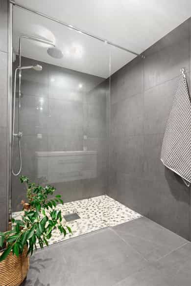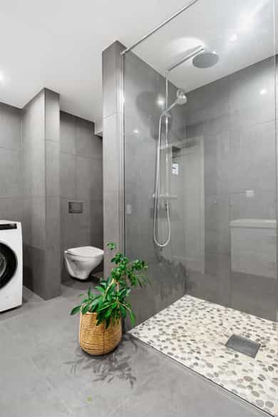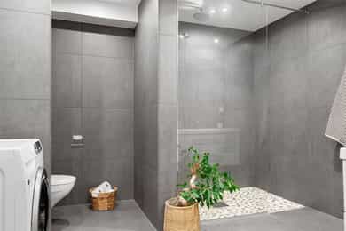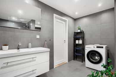 • Flislagt bad med gulvvarme, downlights og stor dusjløsning.